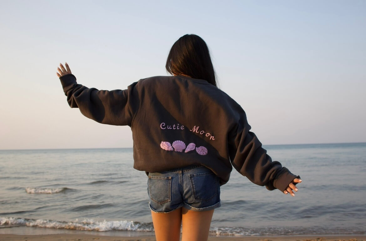 • Back embroidery with “Cutiemoon” text and shell design